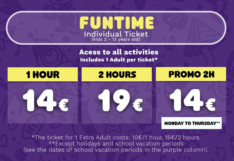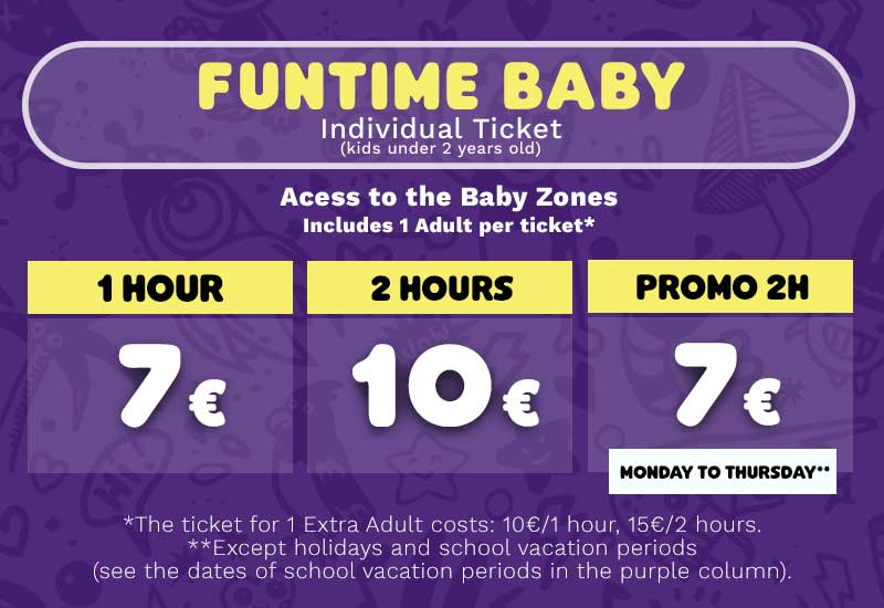 Kids under 2 years old, will only have access to Baby Zones, and should buy the ticket FunTime Baby.