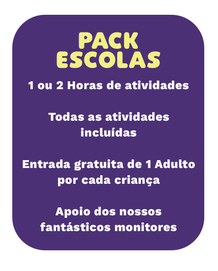O nosso pack para escolas requer um mínimo de 10 participantes. O espaço tem uma capacidade máxima por hora, contacte-nos para saber de que forma podemos receber o seu grupo.